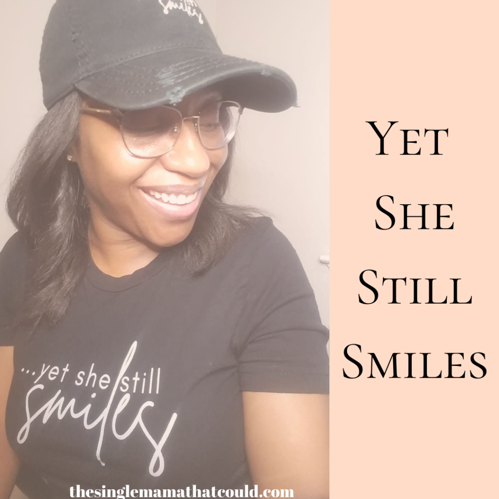 I thought I would kick off this series with telling *my* “Yet She Still Smiles” testimony and give you all some background on how this t-shirt design was birthed.